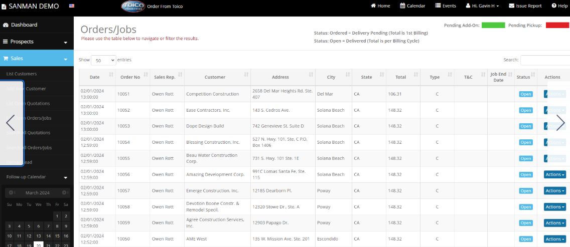 Boost your bottom line with seamless billing and sales workflows. SanMan allows for automatic or manual billing, prorated services, and credit card payments—all designed to save time and reduce errors. Plus, with built-in tools for quote generation, follow-ups, and sales rep reminders, your team never misses an opportunity to close a deal or collect payment. From prospecting to payment, SanMan keeps your revenue flowing.